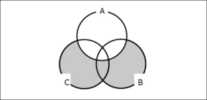 | 問題 | 次のベン図の網掛けした部分の検索条件はどれか。