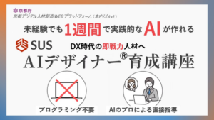 ※本講座は株式会社エスユーエスが元京セラ社長、会長、CEOを歴任された西口 泰夫様と日本を代表するデータサイエンティスト古屋 俊和様との共同事業として運営している『AIデザイナー育成講座®』を無償でご提供するものです